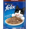 Alimento húmedo para Gatos Felix pavo en salsa. Delicioso alimento húmedo completo y balanceado para gatos en desarrollo, compuesto por trocitos de carne en salsa, para deleitar hasta al paladar gatuno más exigente.