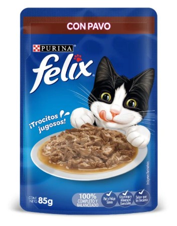 Alimento húmedo felix pouch x 85 gr pavo adulto