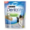 Purina Dentalife Razas Medianas 119g es un snack dental con textura porosa y aireada para perros de 9-18 kg, que limpia hasta la línea de la encía, ayuda a reducir el sarro, refresca el aliento y tiene sabor a pollo sin colorantes artificiales, siendo un complemento para la higiene oral diaria. Su diseño científico promueve una masticación profunda, ideal para dientes traseros y zonas de difícil acceso.