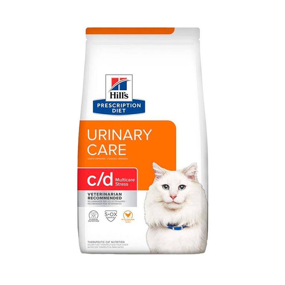HILLS PRESCRIPTION DIET C/D MULTICARE STRESS CAT Especialmente formulada para apoyar la salud urinaria de un gato y al mismo tiempo controlar el estrés, con ingredientes para controlar los episodios urinarios con minerales controlados y promueve el pH deseable de la orina, calcio controlado, bajo contenido de sodio y citrato de potasio añadido.
