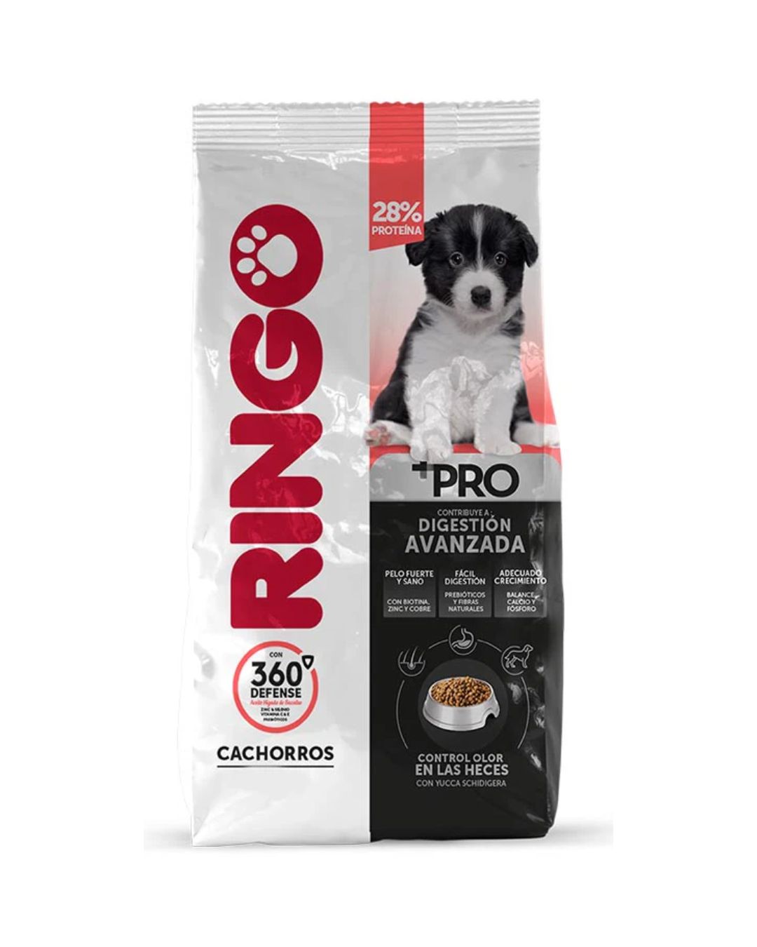 Ringo +PRO Cachorros (1 kg) es un alimento completo para perros menores de un año de todas las razas, enfocado en el crecimiento saludable. Su fórmula destaca por un 28% de proteína, 360 Defense para el sistema inmune, y DHA/EPA para el aprendizaje. Se caracteriza por ser de fácil digestión, sin colorantes artificiales.
